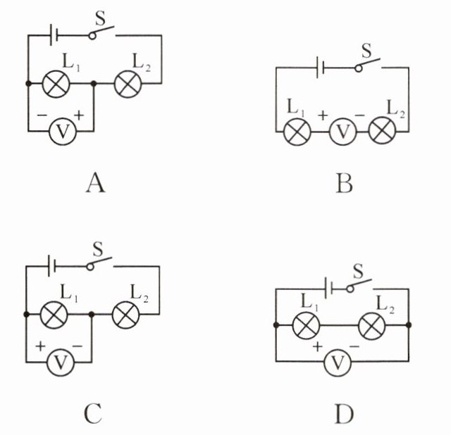 (2024·浦东新区校级期中)如图所示为用电压表测灯泡$L_{1}$两端的电压,则下列接法正确的是( )