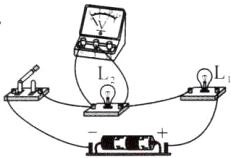 (2)连接电路时,开关应处于_________状态。正确连接电路后,闭合开关,若灯$L_2$断路,则$L_1$两端_________(选填“有”或“无”)电压。