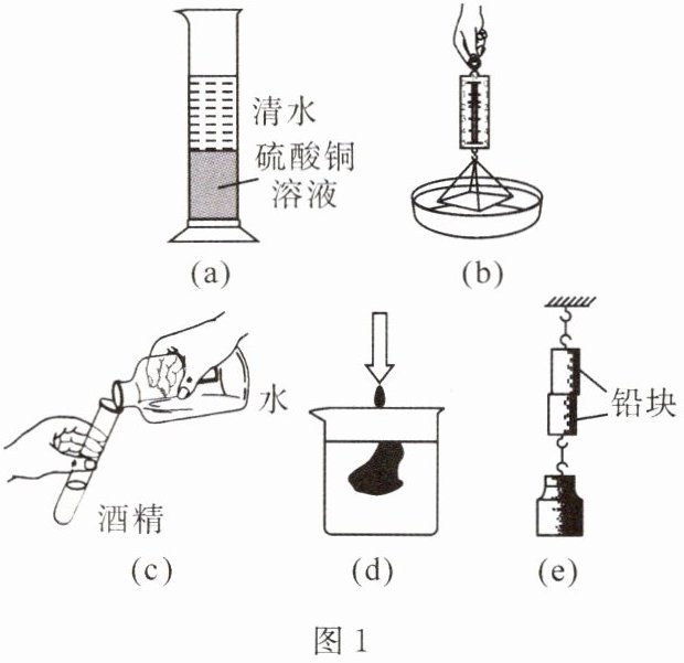(3)图(c)的实验现象中,水倒入酒精后,水和酒精的总体积变小,表明分子间存在______。