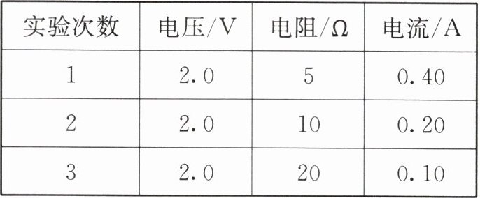(4)小明排除故障后继续实验,先后将3个定值电阻分别接入电路,闭合开关,调节滑动变阻器的滑片,直至电压表示数为2.0V,记下相应电流表示数(如表),分析表中数据,得出结论:______。