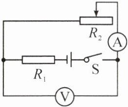 规律总结 定值电阻$R_{1}和滑动变阻器R_{2}$串联,电压表测量滑动变阻器的电压,电流表测量电路中的电流;电压表与电流表示数的比值表示相应的电阻;利用分压规律讨论电压表示数的变化。
