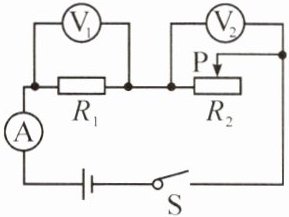 (2024·达州)如图所示,$ R_1 $ 为定值电阻,$ R_2 $ 为滑动变阻器,电源电压保持不变,闭合开关 $ S $,向右移动滑动变阻器的滑片 $ P $ 的过程中,下列说法正确的是( )