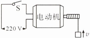 (2024 秋·安庆期末)如图所示是一直流电动机提升重物的装置。已知重物质量 $ M = 50kg $,电源电压 $ U = 220V $ 保持不变,电动机线圈的电阻 $ R = 10\Omega $,不计各处摩擦,当电动机以某一速度匀速向上提升重物时,电路中的电流 $ I = 5A $。试从能量转化和守恒的角度分析计算,重物上升的速度大小为______ $ m/s $。($ g $ 取 $ 10N/kg $)