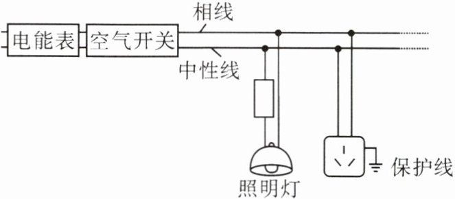 (2024·武汉)如图所示是某同学家中部分家庭电路的示意图。电能表上标有“$220V$ $10(40)A$”的字样,他家正在使用的所有用电器总功率为$6kW$,其中电饭煲的功率为$1.5kW$,饭煮熟后,他将这个电饭煲的插头从插座中拔出,再将功率为$1kW$的电热水壶插头接入插座中,其他用电器仍正常工作,闭合电热水壶上的开关,空气开关跳闸。空气开关跳闸的原因可能是( )