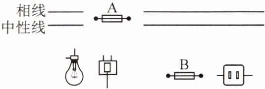 思路点拨这是一个关于家庭电路的连接的作图题,本题想要考查的是关于家庭电路连接的操作细节,有操作规范的要求,也包含着安全用电的考虑,是一种基础题,保险丝A安装在进户线的相线上,保险丝B安装在插座的相线上。