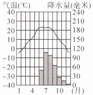 (2)根据资料,在图中补充绘制该城市年降水量柱状图。