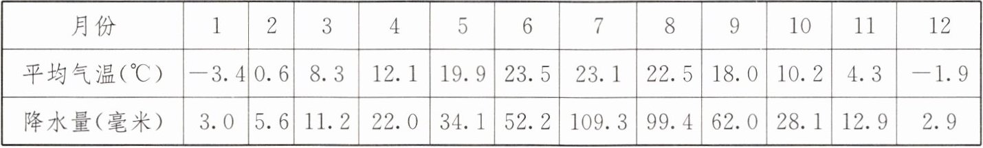 降水量(毫米)3.05.611.222.034.152.2109.399.462.028.112.9 2.9