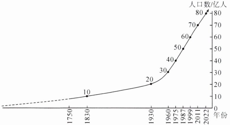 1.根据世界人口增长示意图(下图),分析世界人口增长的特点。
