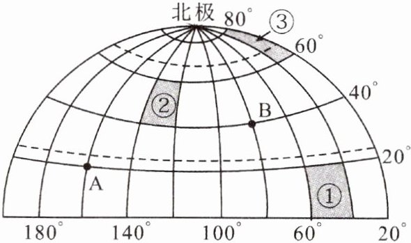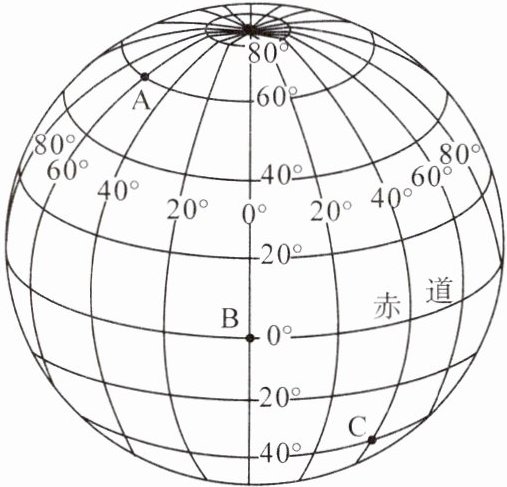(2)B点在______(选填“东”或“西”)半球,C点在______(选填“南”或“北”)半球。