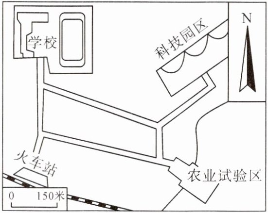 从学校出发,首先往____方向到达科技园区,然后往____方向到达农业试验区,最后往____方向回到学校。