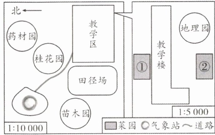 5.若量得从教学区北门到气象站的图上距离为2.5厘米,则实地距离应为( )