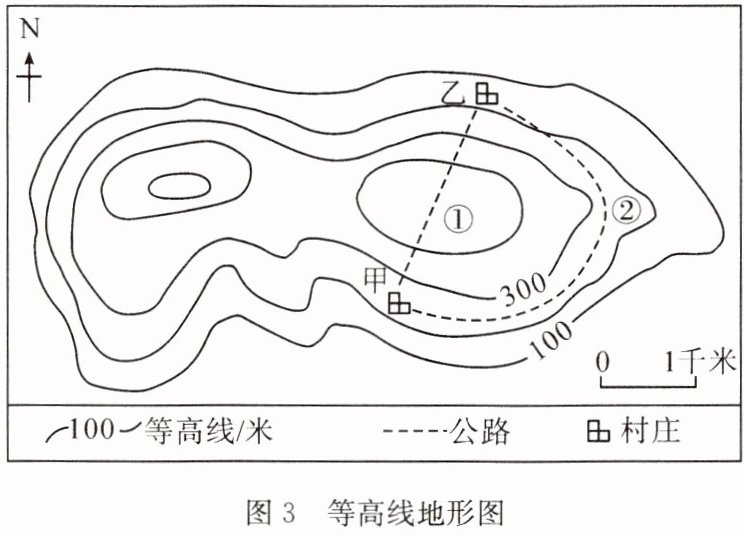 (3)已知图3中甲、乙两村庄的图上距离为2厘米,则其实地距离为______米。