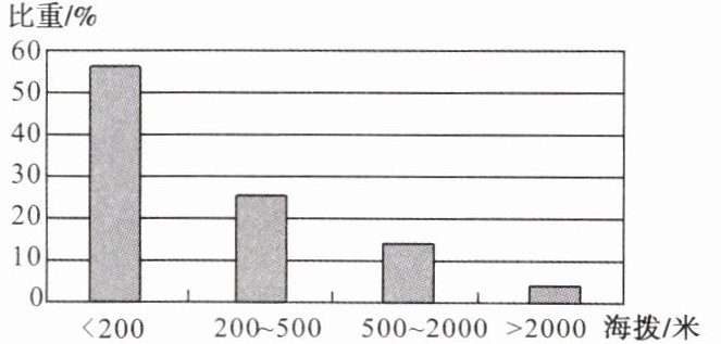 【例】读某岛国不同海拔的陆地面积所占比重统计图,回答(1)(2)题。