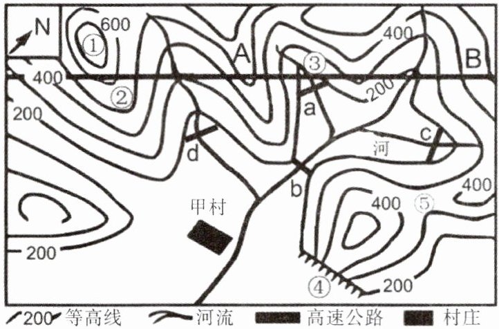 一位工程师在进行高速公路测绘时,拿到了一张当地的等高线地图,要求在图中海拔 300 米高处建一条水平的高速公路。为了保护当地生态环境,高速公路基本上采用高架桥和隧道形式修建。读当地等高线地形图(单位:米),完成 6~8 题。