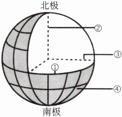 (2)①②③④中,______表示赤道半径,______表示极半径;地球的平均半径约为______千米。