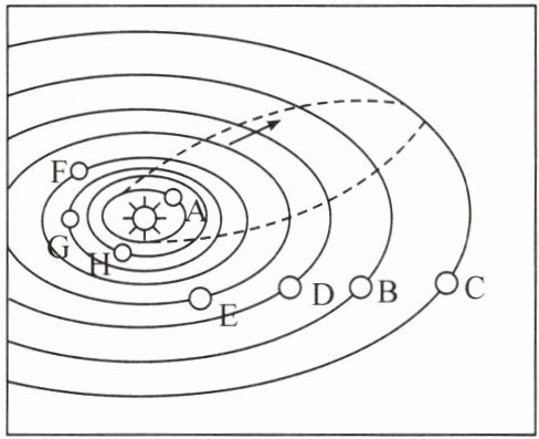 (3)图中G为地球,地球是太阳系八颗行星中距太阳由近及远的第三颗行星,其轨道介于金星与火星之间