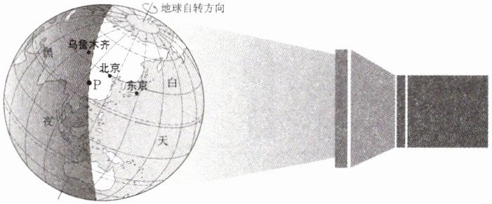 (2)从图中可以看出,P点正位于晨线上,即正处于日出时刻,所以A正确。