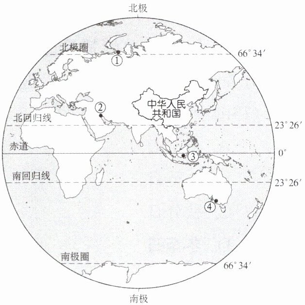 带和寒带的分界线。据此判断,①地位于北寒带,②地位于北温带,③地位于热带,