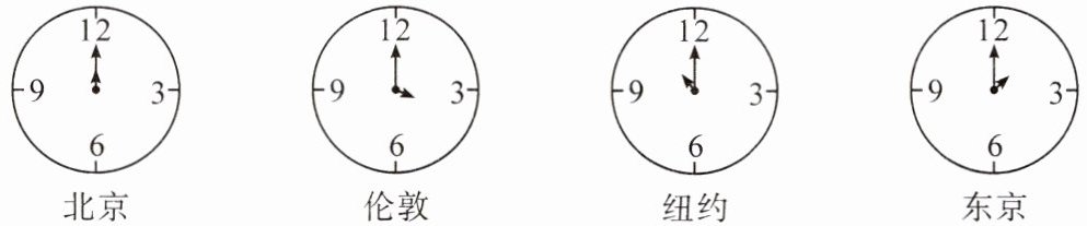 2. 家住盐城的小明夏天到海南地区旅游,他办理入住手续时看见宾馆大厅的四个时钟显示同一时刻四个城市时间不同,请你说明原因( )