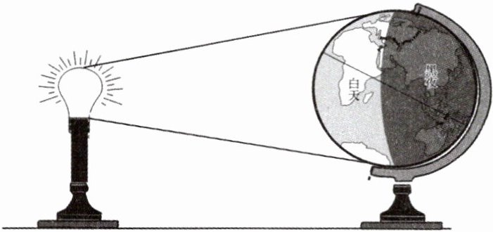 用打开的手电筒模拟“太阳”,将地球仪放置在手电筒前方,拨动地球仪,演示地球自转。读模拟地球自转示意图,完成3~5题。