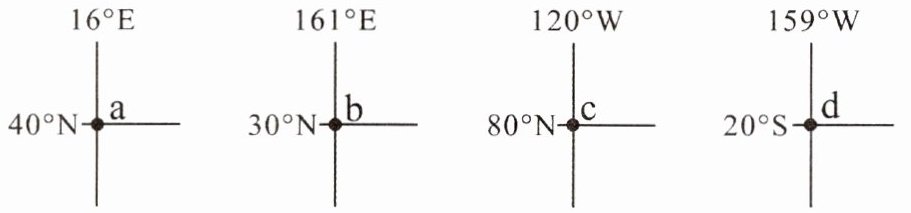 4. (2023·黑龙江)小明的东面是东半球,西面是西半球,南面是低纬度,北面是中纬度,此时小明所在的位置是( )