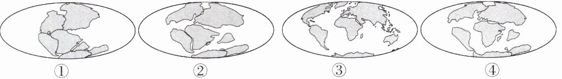 1. 根据大陆漂移说,四幅图按时间顺序排列正确的是( )