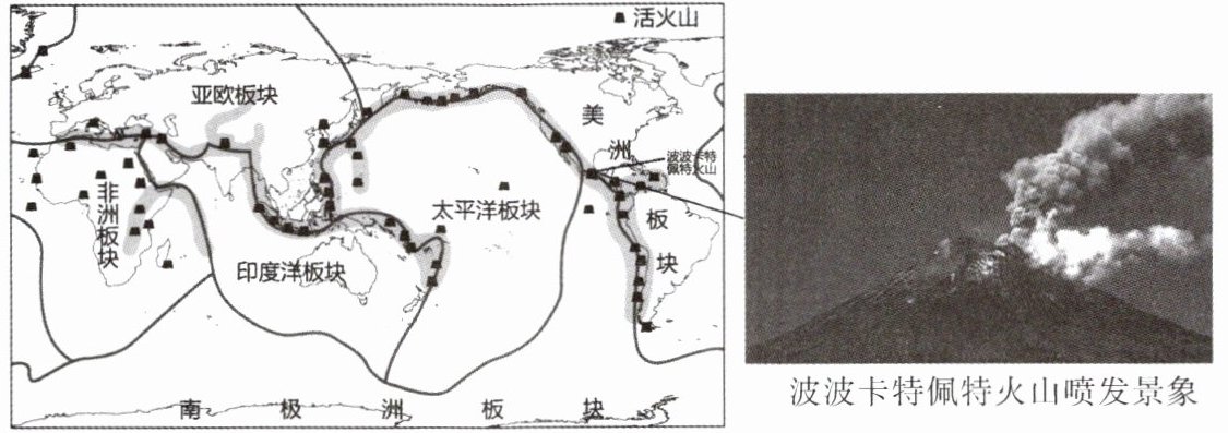 (4)用板块知识解释“波波卡特佩特火山是世界上最活跃的火山之一”。