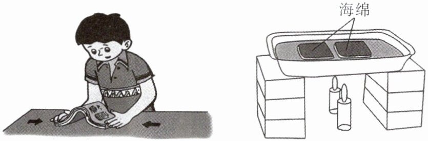 实验二:如右图所示,利用铝箔盒、海绵、蜡烛水等材料制作模型,模拟板块运动。