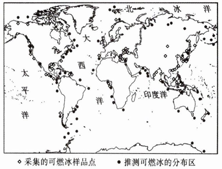 源。下图为全球可燃冰(天然气水合物)分布图。读图完成7~9题。
