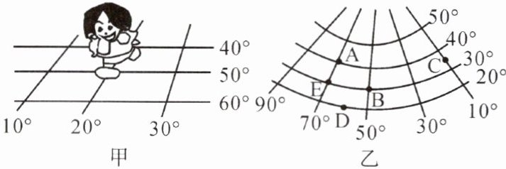 (3)图乙中所示的纬度是______(选填“南纬”或“北纬”),经度是______(选填“东经”或“西经”)。A 点的经纬度是(______,______)。