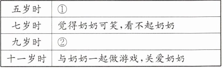 14. “女儿”对“奶奶”的态度经历了一个变化的过程。请依据原文,在表格空缺处填入恰当的内容。