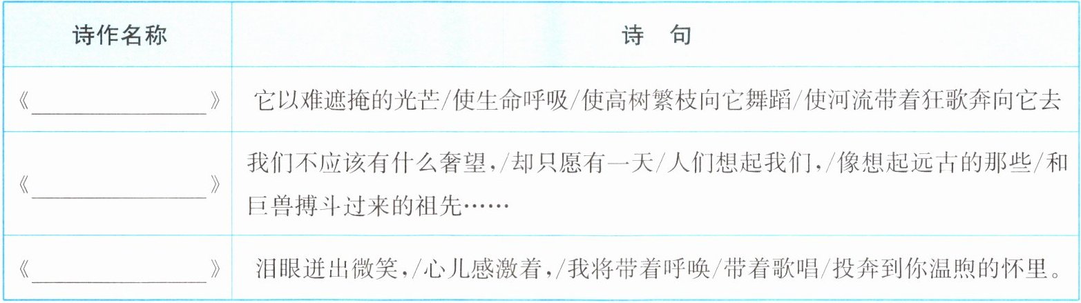 5. 根据以下提示的诗句写出具体的诗作名称。