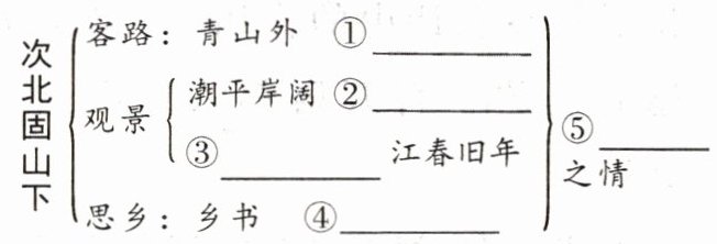 ①行舟绿水前 ②风正一帆悬 ③海日生残夜 ④归雁洛阳边 ⑤思乡