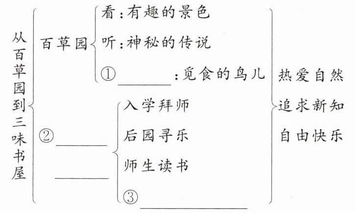 这篇散文通过写“我”对百草园和三味书屋美好生活的回忆,表现了儿童对