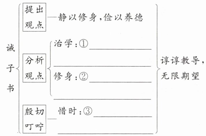 ①夫学须静也,才须学也,非学无以广才,非志无以成学;②淫慢则不能励精,险躁则不能治性;③年与时驰,意与日去,遂成枯落,多不接世,悲守穷庐,将复何及