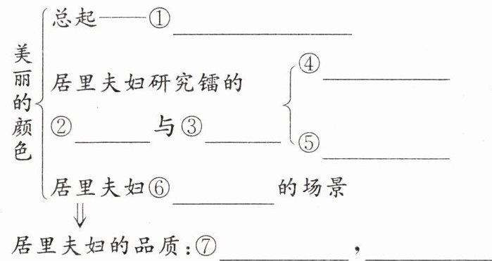①两次快乐时期 ②条件 ③经历 ④条件简陋 ⑤辛勤工作 ⑥发现镭 ⑦坚韧执着 献身科学