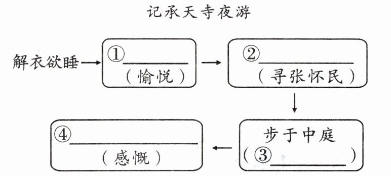 ① 欣然起行 ② 念无与为乐者 ③ 赏庭下月景 ④ 但少闲人如吾两人
