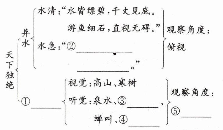 ①奇山 ②急湍甚箭,猛浪若奔 ③鸟鸣 ④猿啼 ⑤仰视