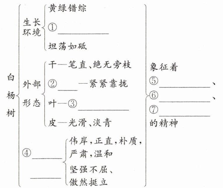 ①无边无垠 ②枝 ③片片向上 ④内在气质 ⑤坚强不屈 ⑥朴质严肃 ⑦力求上进