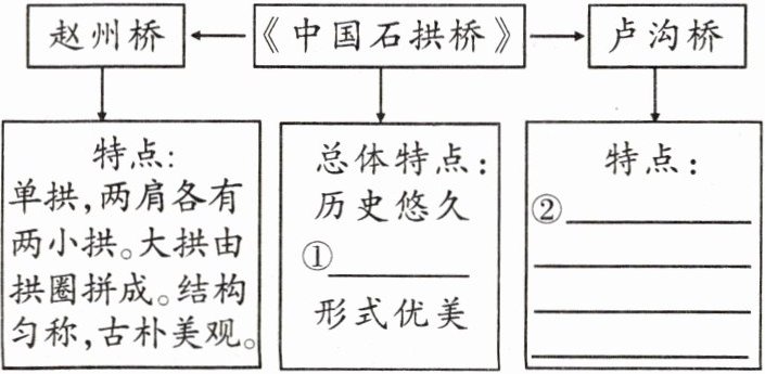 ”,着重说明了我国石拱桥在设计、施工上的伟大创造和高超的技术水平,从而歌颂了我国劳动人民的勤劳、智慧和伟大的创造力。