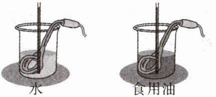 3. 在“比较不同物质吸热的能力”实验中,可以通过对水和食用油加热相同的时间,比较它们温度升高的大小,来判断它们的吸热能力强弱。实验装置如图所示,两个加热器的规格相同,烧杯中水和食用油的初温相同、