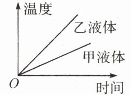 4. 两个相同的容器分别装了质量相同的两种液体,用同一热源分别加热,液体温度与加热时间的关系如图所示。根据图线可知(