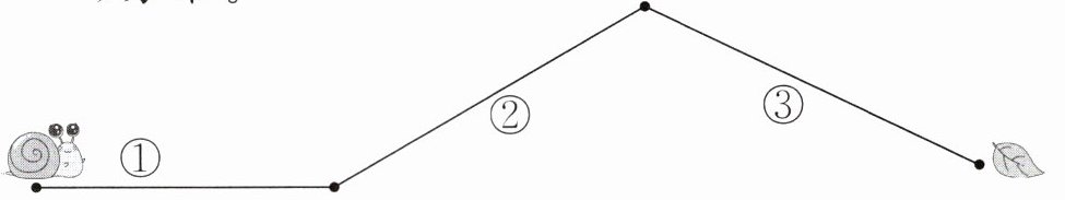 2. 基础 蜗牛沿着下面的路线爬行,寻找新鲜的树叶。在图上量一量,填一填。
