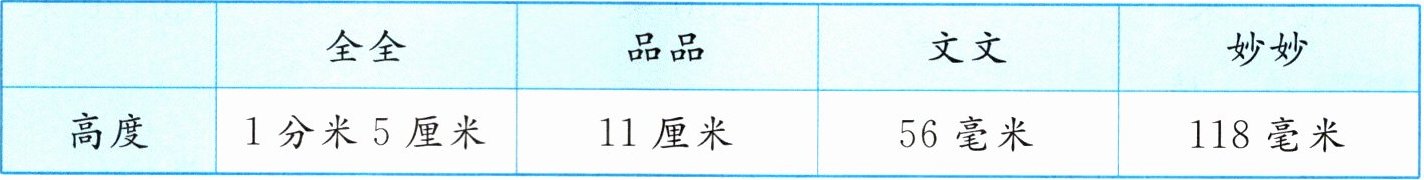 3. 提升 四位同学在手工课上用彩纸剪兔子,他们剪的兔子高度如下。