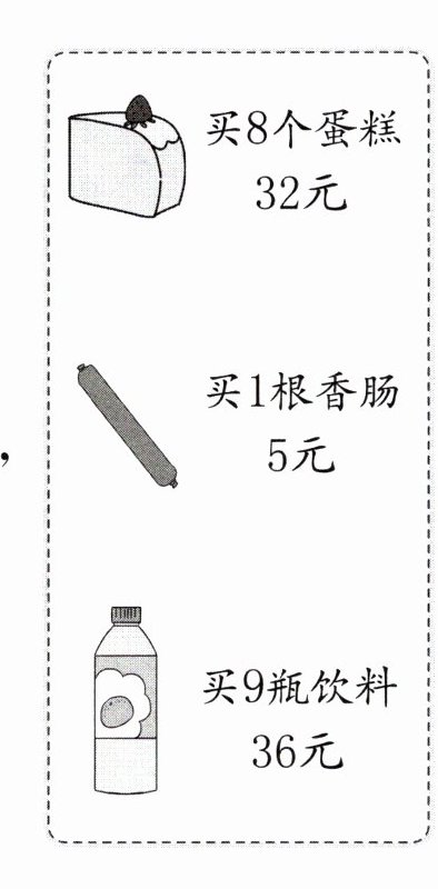 答:1根香肠比1瓶饮料贵1元。(合理即可)