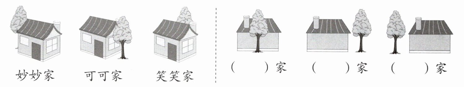 2. 提升 下面左边三幅图片分别是妙妙家、可可家和笑笑家,右边三幅图片分别对应的是谁家?请将他们的名字写在括号里。