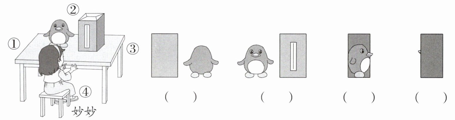 1. 基础 下面四幅图分别是妙妙从哪个位置看到的?在( )里填序号。