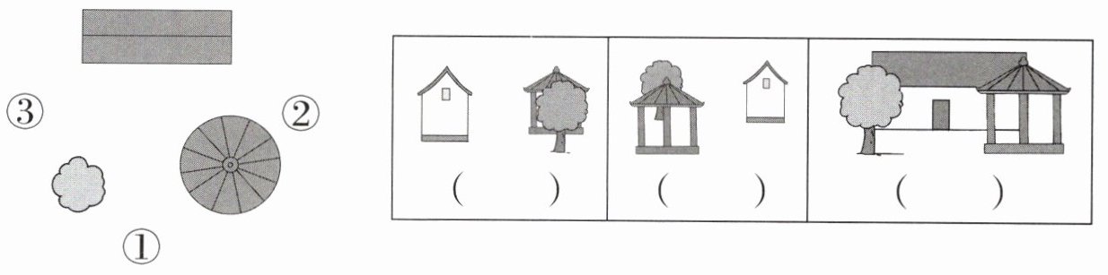 3. 提升 下面几幅图分别是从哪个方位看到的?把序号填在括号里。