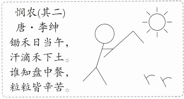 1. 品品为古诗《悯农》画了一幅配图,你能找到图中有哪些角吗?数一数。锐角有(