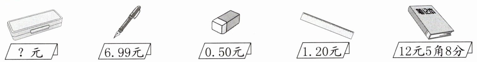 (3)品品付了下面这些人民币正好能买一个文具盒,文具盒价格为(